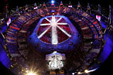Lin Dan of China plays a shot during the men's badminton singles final match against Lee Chong Wei of Malaysia during the Beijing 2008 Olympic Games. [Photo/Agencies] |