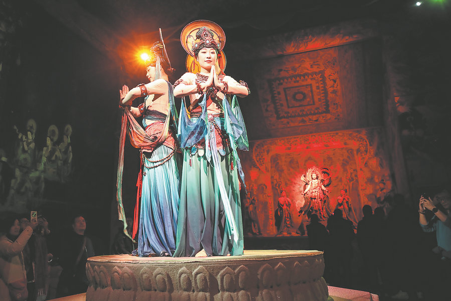 Tourists to Dunhuang, Gansu province, are treated with Dunhuang dance-inspired night shows, in December. [Photo/Xinhua]