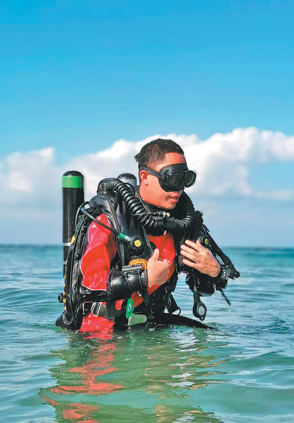 Tseung Pak-long conducts diving training. [Photo provided to CHINA DAILY]