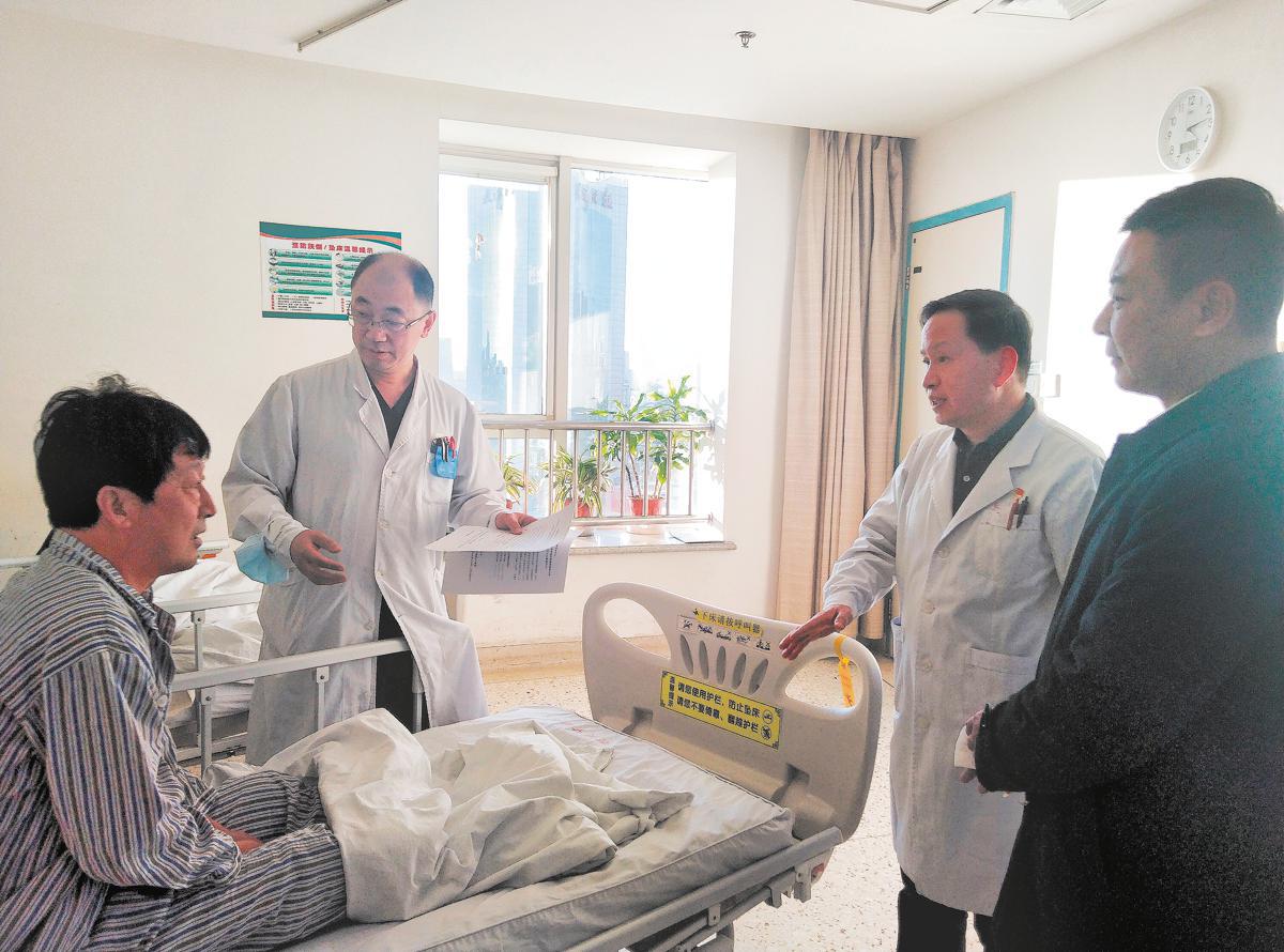 Xu Weiguo (second from right) checks the post-operation status of a patient at Tianjin Hospital. [Photo provided to China Daily]
