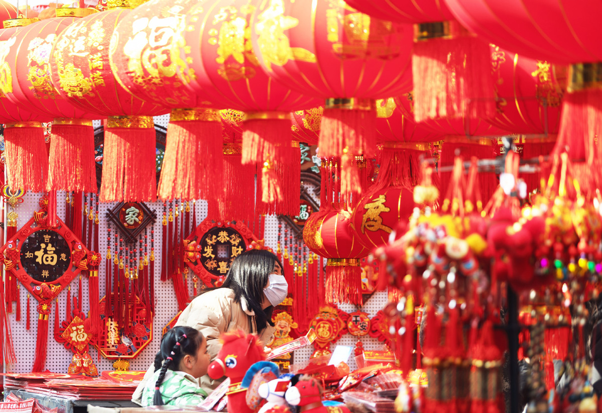 Shoppers pick out festive decorations at a market in Nanjing, Jiangsu province, on January 28, 2026. With Spring Festival nearing, markets nationwide are busy as people shop for holiday goods and visit New Year fairs in preparation for the upcoming celebrations. [Photo/Xinhua]