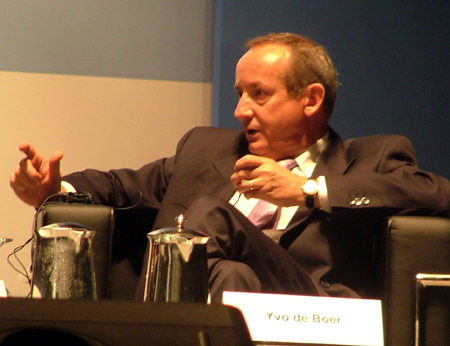 Yvo de Boer reacts in a media interaction session at Carbon Forum Asia, which opened in Singapore on November 6. [chinadaily.com.cn]