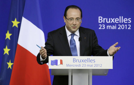 French President Francois Hollande speaks the media after an informal European Union leaders summit in Brussels May 24, 2012.