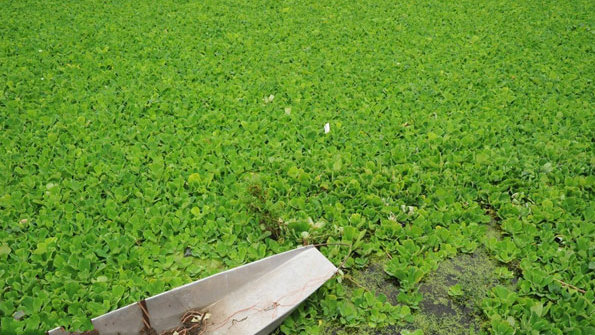The Qingshui River in South China's Guangxi Zhuang autonomous region has been totally blanketed as the plants grow profusely.