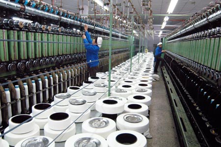 An export-oriented textile enterprise in Nantong, East China's Jiangsu Province.China's February trade surplus soared nearly tenfold compared to the same month last year, hitting $23.76 billion, the General Administration of Customs said yesterday.[newsphoto]