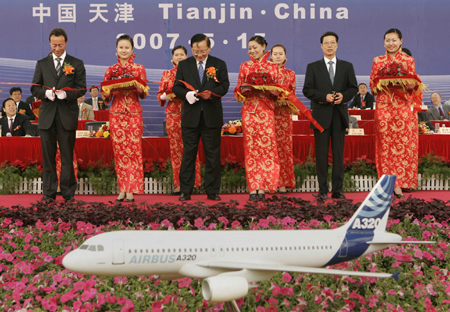 "The new top management of Airbus fully backs this very important development of our presence in this country. We are determined to do everything in our power to ensure the aircraft assembled in Tianjin will be delivered on time and to the same quality standards as those delivered in Toulouse, France, and Hamburg, Germany," said Fabrice Bregier, Airbus chief operating officer (COO). Bregier became Airbus COO last November, shortly after the appointment of new Airbus president and CEO Louis Gallois. The Tianjin project is a strategic part of Airbus' plans to ramp up production of A320s from 32 jets per month to 36 by the end of next year to meet the strong demand for the aircraft. The single-aisle A320 family aircraft is the company's most successful model. It has received more than 5,000 orders and has a backlog of over 2,000 jets. China has more than 370 A320 family jets on order and now operates over 270, accounting for more than 80 percent of Airbus' total fleet in the country. Airbus declined to specify the total investment in the project. It was reported earlier that it would cost 8 billion to 10 billion yuan. The factory, located in the Tianjin Binhai New Area, is 30 km from the Tianjin Port and 13 km southeast of the northern coast city's downtown.