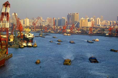 A general view shows the port alongside Huangpu River in Shanghai. China's trade surplus in June hit a new high of US$26.91 billion, up 85.5 percent on the same month last year. [Reuters]