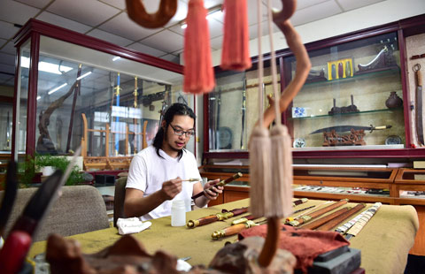 At present, most customers are martial art lovers and collectors around the world, he said, adding that his purpose is not just to sell swords but also to carry on and teach people about the traditional craft.