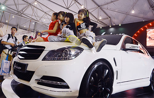 Models are pictured at the on-going 2013 Chengdu auto show.