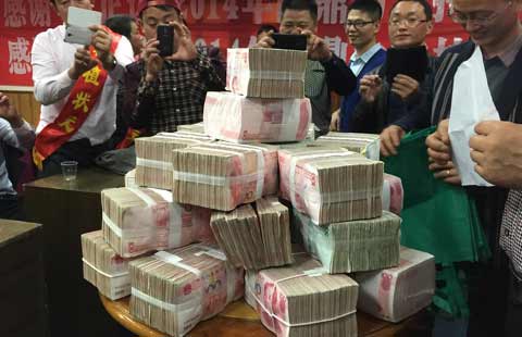 Staff members give high-five to customers in Zhengzhou, Henan province, Jan 10, 2014. [Photo/CFP] |