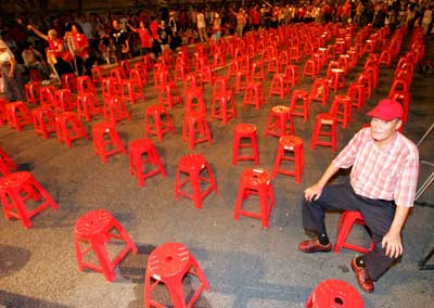 Taipei rally calls for Chen Shui-bian to quit (Reuters) Updated: 2006-09-03 08:52  A protestor sits on a stool before a rally outside the residence of