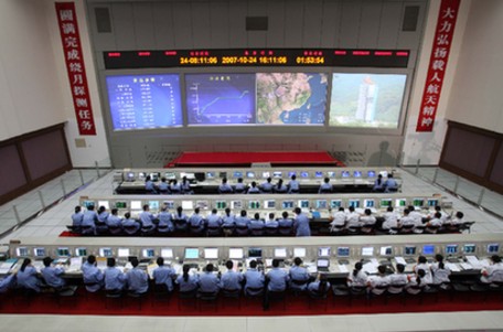 Experts at the Beijing Space Command and Control Center are conducting real-time monitoring of the launch October 24, 2007. [Xinhua]