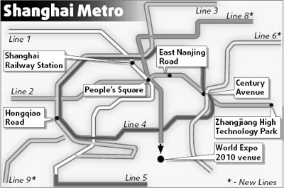 Three new lines - 6, 8 and 9 - and the extended sections of two existing lines - 1 and 4 - are scheduled to start operating at 9:30 am, taking the network's total length to 234 km, the longest in the country and seventh biggest in the world after New York, London, Tokyo, Seoul, Moscow and Madrid, Zhu Husheng, the general manager of Shanghai Shentong Metro Co Ltd, said. "But we top all of them in terms of the speed of expansion," he said. "None of them have ever added 96 km to a subway network in a single year." Zhu said the extension will provide better passenger access to what is said to be one of the most crowded metro systems in the world. The existing five lines handle about 2.3 million rides every day, he said. A passenger entering and leaving the network is counted as one ride. During the National Day holiday in October, a record 2.81 million rides per day were recorded, with Line 1 being the busiest. The extension is expected to boost the daily number of rides by at least 700,000. About 900 trains are currently running on the Shanghai metro, Zhu said. "By 2012, the city will have about 2,500 subway trains, which will ease congestion significantly," he said. Bi Xiangli, chief executive officer of the operator's research and consultancy company, said the metro was an important part of the city's urban development. Before 2010, when the World Expo is held, the length of the metro will reach 400 km. Under the existing plan, the system will be expanded to more than 800 km, Bi said. But no timeline has been set. As well as the track extensions, 160 new stations will open tomorrow, including the east terminal of Line 8, which is located next to the venue for the 2010 Shanghai World Expo. The new routes will also extend the subway to the suburb of Songjiang district, expanding the system's coverage to 13 of Shanghai's 19 districts. Line 6, the only line operating solely in the Pudong district, will connect the major development areas of Waigaoqiao tax-free zone, Jinqiao export zone and Lujiazui financial zone. Line 4, which crisscrosses five of the other seven lines for transfers, is aimed at making travel in the downtown area easier, officials said. |