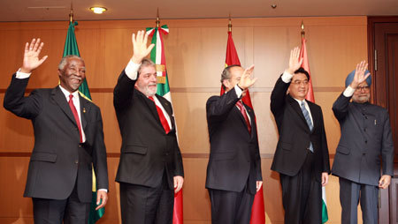 Hu also proposed priorities for further cooperation among the five countries. The countries should strengthen solidarity and coordination, promote common development, increase economic exchanges and coordination, and carry out mutually beneficial cooperation, Hu suggested. The countries should step up coordination and advance South-South cooperation, and push forward reforms in global systems of economy, finance, trade and development, Hu said. Hu also called for a long-term view and the promotion of North-South dialogue, adding that the five nations should work together to shoulder responsibilities, and wield a positive influence on global affairs. Hu's proposals won support and approval from the leaders of the other four countries, and were written into the declaration issued after the meeting of the five nations, Yang Jiechi said. The proposals are expected to wield a positive influence on South-South cooperation and the North-South dialogue, Yang added. |