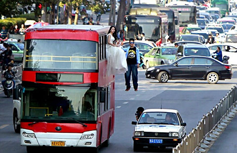 Zhang, a 29-year-old teacher at the No 19 Middle School in the city of Jiamusi, was crossing a road outside the school's main gate when she saw two students standing in the way of an oncoming bus.