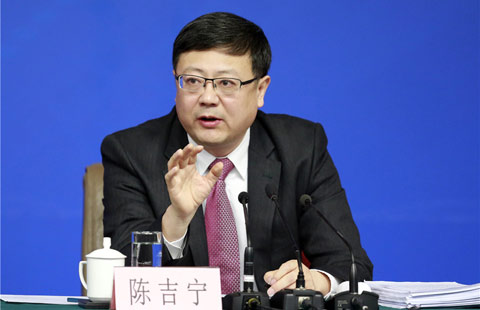 Xiao Yaqing (L), chief of the State-owned Assets Supervision and Administration Commission of the State Council (SASAC), arrives at a press conference on the reform of state-owned enterprises in Beijing, March 12, 2016.[Photo by Wang Zhuangfei/chinadaily.com.cn]
