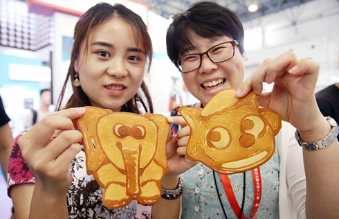 Husbands draw pictures on their pregnant wives' bellies at a stadium in Hefei, Anhui province, on Jun 11, 2017. A total of 897 mothers-to-be participated in the event, which was recognized by the Shanghai China Records Headquarters as China's largest belly-painting event for pregnant women.[Photo by Wang Jun/For China Daily]