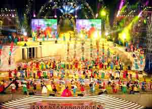 Entertainers perform during the opening ceremony of the 10th China Golden Rooster and Hundred Flowers Film Festival on October 18. [newsphoto.com.cn]