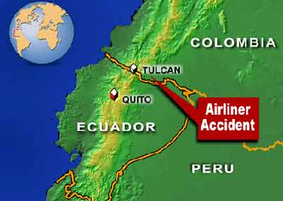The plane's planned flight path took it into Colombian airspace and over Ipiales as it headed to Tulcan, 110 miles northeast of Quito, the TAME spokesman said. The mayor's office of Ipiales, located six miles northeast of Tulcan, said the city's airport was closed because of fog.