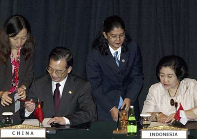 The declaration, reviewing their fruitful collaboration since 1997 and outlining future development perspectives, described such a strategic partnership as "non-aligned, non-military, and non-exclusive.'' Chinese Foreign Minister Li Zhaoxing said that China has become the first strategic partner of the association. Besides China, India yesterday also acceded to the TAC. The two nations became the first foreign powers to join the treaty at the summit of ASEAN. Indonesian President Megawati Sukarnoputri, ASEAN's chairperson, said the accession would contribute to the region's long-term peace and stability. "It is yet another testimony to our deeper political trust and higher level of co-operation,'' said Megawati yesterday. The Southeast Asian nation group includes Brunei, Cambodia, Indonesia, Laos, Malaysia, Myanmar, the Philippines, Singapore, Thailand and Viet Nam. The key principles of the TAC, adopted in 1976 by the core Southeast Asian countries, include respect among member nations for their sovereignty and territorial integrity, non-interference in each other's affairs and peaceful settlement of disputes. Before the two documents were signed, Premier Wen Jiabao attended the summit meeting with 10 member leaders, also known as the 10+1 Summit. Wen described the declaration as "milestone in bilateral relations'' and promised to strengthen political dialogue to enhance mutual trust. "China is ready to work closely with ASEAN to speed up the negotiations and complete the Free Trade Area (FTA) as schedule (by 2010),'' said Wen, calling for joint efforts to break the US$100 billion trade volume mark by 2005. He added that China will implement the joint declaration on teamwork in the fields of non-traditional security issues as well as the Declaration on the Conduct of Parties in the South China Sea, which were signed last year. Wen said that China supports the Initiative for ASEAN Integration and will increase the resources put into the development of the Mekong Basin. China will commence the contracted construction of the Laotian section of the Kunming-Bangkok Highway early next year, and finance the feasibility study of the missing link of the Pan-Asia Railway inside Cambodia, according to Wen. He also called for a mechanism for exchanges between different sectors including youth, public health, science and technology, culture and education. "These practical measures have shown China's sincere wish of pushing regional co-operation,'' said Foreign Minister Li. Wen yesterday also held a separate meeting with Indian Prime Minister Atal Behari Vajpayee. Wen said that the population of East Asia, as well as South Asian countries like India, will top over 3 billion, accounting for over half of the world's total. The stability, development and rejuvenation of Asia is of great importance to the world, Wen said in the meeting, according to a Chinese Foreign Ministry spokeswoman. Vajpayee said that India will resolve problems with China through friendly dialogue and negotiations.