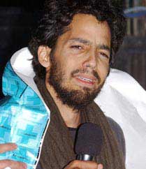 U.S. magician and illusionist David Blaine emerges from his box. [AP]