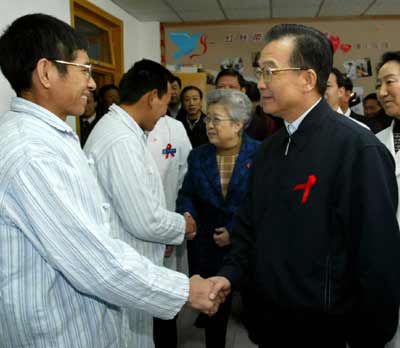 Wen and Vice-Premier Wu Yi, who is also the health minister of China, visited Ditan Hospital, a well-known hospital throughout China for dealing with infectious disease cases, and expressed their sympathies to patients there Monday, which was World AIDS Day.