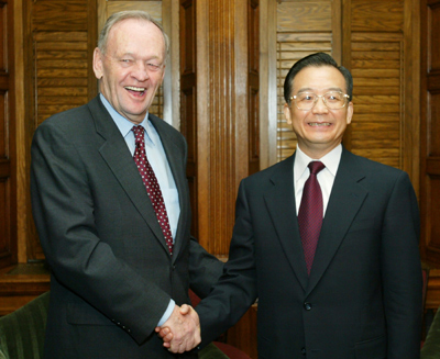Wen also met Canadian Senate and House of Commons leaders on Thursday. He will meet with Martin, who will be sworn in on Friday.