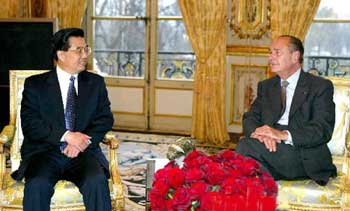 The document, following the one signed between former Chinese President Jiang Zemin and Chirac in 1997, was hailed by Hu as "inheriting the past and ushering in the future." The increasingly mature Sino-French partnership has become an indivisible part of Sino-European relations and Asian-European dialogue, the declaration said. China and France reiterated they stand for multipolarity, which is believed by the two sides as a proper way to prevent and resolve crisis when facing regional and global threats and challenges. China and France agree with the necessary reform of the United Nations Security Council aimed at strengthening its ability to deal with various threats and challenges to global peace and stability, said the declaration. Another highlight of the document is that China and France underline the need to promote and protect human rights in line with the United Nations Charter, by respecting the universality of these rights. The two countries believe that while taking into account each other's differences, it is the duty of states to promote and protect all human rights and fundamental liberties, the document reads. During their talks in the morning, the two presidents also exchanged views on strengthening bilateral economic and trade relations. Chirac said France is willing to work with China in such areas as nuclear energy, aviation and railways, and is ready to transfer key technologies to China to advance localized production so as to achieve new progress in economic and trade ties between the two countries. Hu also indicated there is still great potential for the two economies. Beijing-based observers indicated Chinese-French trade relations have not yet reached the level of political relations. They say France has world-class technology in express railways, aviation, and the civil use of nuclear energy and there is room for further co-operation between the two countries in these fields. Today, Hu will make a stopover at the European aircraft manufacturer Airbus in the southern French city of Toulouse before his visit to Egypt. The Chinese president revealed late yesterday that China Southern Airlines recently agreed to buy 21 Airbus aircraft. According to a survey published in Sunday's edition of the newspaper Le Journal du Dimanche, 85 per cent of the French public want trade relations to improve between the two countries, and 68 per cent say they have a good impression of China. The survey was conducted last December. Yesterday afternoon (local time), Hu became the first Asian leader to address the National Assembly, the lower house of the French parliament. Hu hailed the sound development of Sino-French relations and called on all peace-loving peoples and nations in the world to join hands in safeguarding world peace and promoting common development. Chirac firm on one-China position Chirac said France condemns any initiative such as the referendum which can appear as aggressive, calling it "irresponsible." France hopes the Chinese people will resolve the Taiwan question in line with the one-China policy and through constructive dialogue, Chirac said on the occasion of the 40th anniversary of Sino-French diplomatic relations. Chirac's comments came at a joint media conference in the Elysee Palace with the visiting Chinese president. Taiwan leader Chen Shui-bian has proposed referendums on March 20, which Beijing sees as a dangerous move towards independence. In a joint statement signed by Hu and Chirac, the French Government "confirmed its constant position on there being one China" and stated its opposition to "any unilateral initiative whatsoever, including a referendum which aims to change the status quo by increasing tensions in the straits and leading Taiwan's independence." Late on Monday, shortly after Hu's arrival in Paris, at private talks with Hu and at a state banquet in honour of the Chinese president, Chirac had called the planned referendum a "grave mistake." He said there is no doubt that there is only one China and that maintaining stability across the Taiwan Straits is in the interests of all sides.
