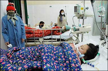 Relatives stand beside patients suspected of having contracted the bird flu virus. Vietnamese health authorities said there are two new confirmed deaths from the bird flu outbreak.[Agencies]