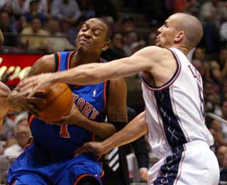 New York pulled to 66-56 on a transition jumper by Kurt Thomas late in the third quarter, but Rodney Rogers answered with a 3-pointer and a layup. New Jersey then opened the fourth quarter with a 10-4 run to end all doubt.