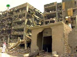 Saudi state television showed an entire government building wrecked after a car bomb rocked the capital Riyadh on Wednesday.[Reuters]