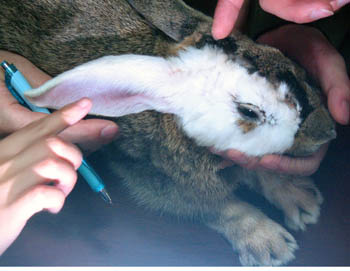 Rabbit with a gray and white face after transplant (Newsphoto) Updated: 2005-12-24 11:26
