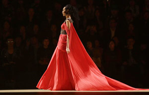Models present creations by Chinese designer Qi Gang during a fashion show at China Fashion Week in Beijing October 26, 2012.