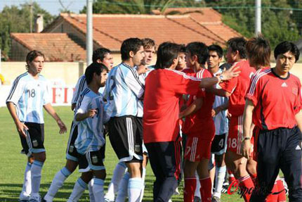 The foul from Argentina trigers conflict. Two Argentine players were sent out during the stoppage time.[sina.com]