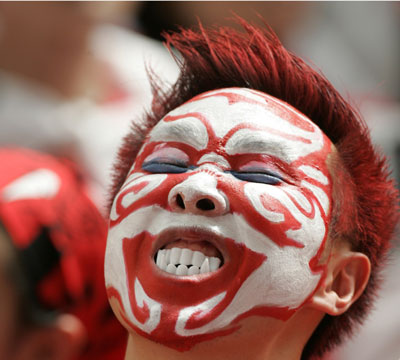 A South Korea fan waits in the stands before South Korea's Group G World Cup 2006 soccer match against Togo in Frankfurt June 13, 2006. [Reuters]