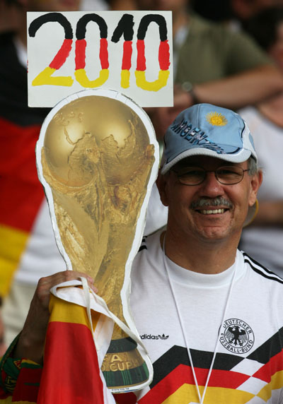 A fan waits in the stands before the World Cup 2006 third place soccer match between Germany and Portugal in Stuttgart July 8, 2006.[Reuters]