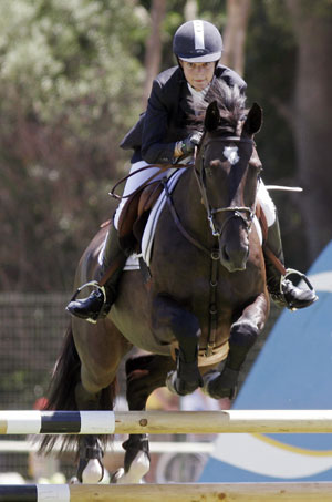 the Onassis fortune, rides 'AD Joujou' to clear an obstacle during the CSI