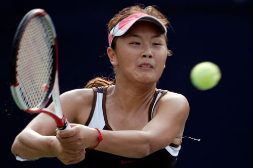 China's Peng Shuai returns a shot to Russia's Maria Kirilenko during their second round match at the China Open tennis tournament in Beijing September 20, 2006. Peng won 5-7 6-4 6-2.[Reuters]