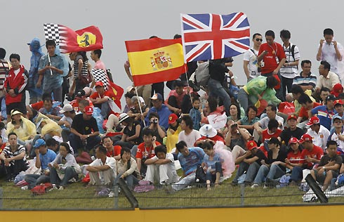 Fans watch the Chinese F1 Grand Prix in Shanghai October 7, 2007. Ferrari Formula One driver Kimi Raikkonen of Finland won the Chinese F1 Grand Prix in Shanghai. [Reuters]
