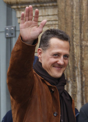 Former Formula 1 driver Michael Schumacher from Germany waves after arriving in Oviedo October 26, 2007. Schumacher is the winner of the 2007 Principe de Asturias Award for the Sports. [Agencies]