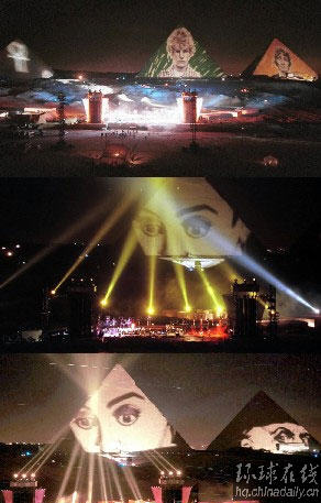 這張拼版照片顯示了1999年年末,埃及為迎新千年慶典在金字塔下進行最后彩排和表演。