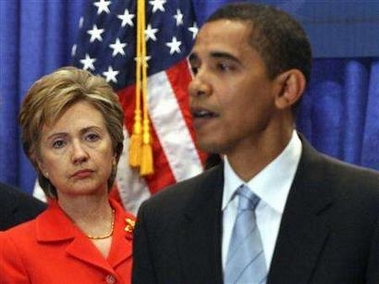 2005年11月17日,奧巴馬在國會召開記者會,希拉里站在他旁邊。如今,二人都對2008年的總統寶座充滿期待。