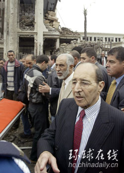 阿爾及利亞總理貝勒卡迪姆和內(nèi)政部長(zhǎng)視察爆炸現(xiàn)場(chǎng)。