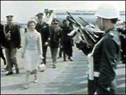 The crew of the US shuttle moved into the Mir for group photos, before presenting the cosmonauts with gifts of chocolate, fruit and flowers. The Russians gave the Americans gifts of bread and salt, the traditional symbols of welcome.