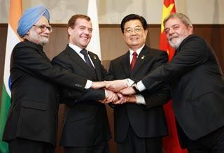 President Hu Jintao met with Russian President Dmitry Medvedev, Brazilian President Luiz Inacio Lula da Silva and Indian Prime Minister Manmohan Singh on the sidelines of the G8 summit.
