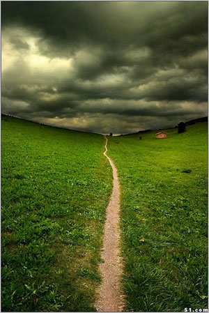 清晨里躺著兩條路,