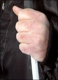 57歲的鮑勃?麥克尼克來自愛爾蘭西部的梅奧郡。2005年11月,一個廢品回收站內滾燙的鋁水發生意外爆炸,導致他失明。
