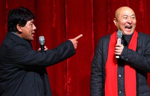 Chow Keung (L), CEO of XStream Pictures and Alexander Ganz (R), executive partner of Ganz&Stock Germany, discussed the possible collaboration between movies and games. [Photo by Fan Zhen/chinadaily.com.cn] |