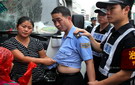 Holding an "angry bird" at the conference, Paul Chen, General Manager of Rovio China, said the company would build theme parks and set up official stores in China in the near future. [Photo by Fan Zhen/chinadaily.com.cn] |