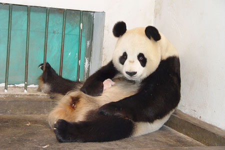 Giant panda cub No.7(m.ming7.cn)Updated: 2007-01-25 13:41 Giant panda No. 7 Features: the panda is able to crawl on the ground. Probably because he is familiar with the person raising him, he is quite active and very cute when he is called, gazing around as he walks, opening his big eyes and chewing the air with his square mouth and raising his fluffy round head. If you play with him, he will roll shamelessly around on the ground like a naughty boy. [Photo courtesy of The Research and Conservation Center for Giant Panda]
